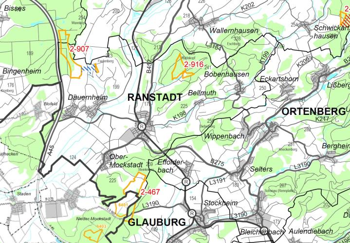 Dabei ist nicht die orange umrundetes Fläche 2-907, sondern der blau straffierte Bereich nördlich von Dauerheim relevant